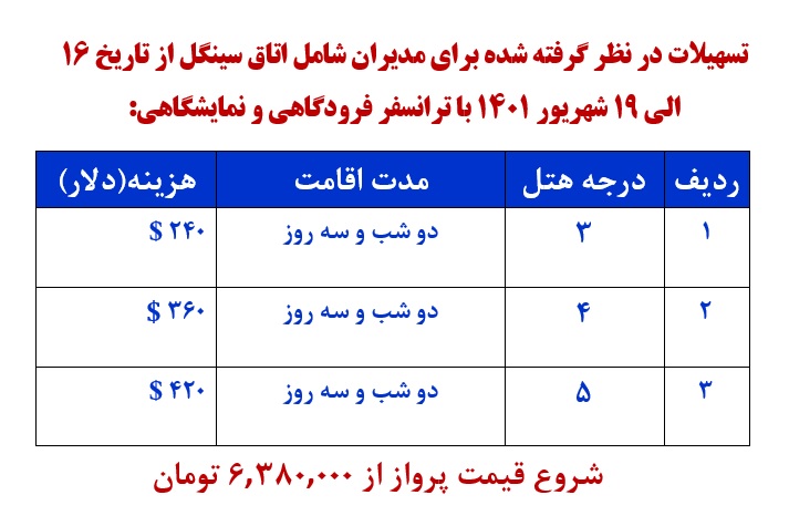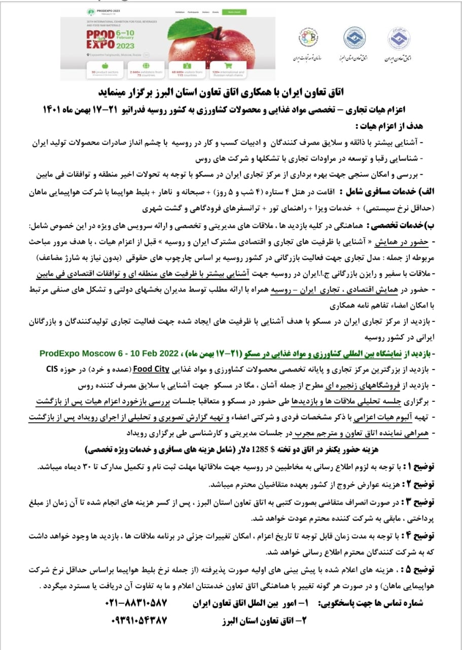 جهت کسب اطلاعات بیشتر و ثبت نام و رزرو غرفه لطفا با شمارههای ۱۹-۸۸۹۹۵۸۱۴ اداره آموزش اتحادیه مرکزی نظارت و هماهنگی تماس حاصل فرمایید.